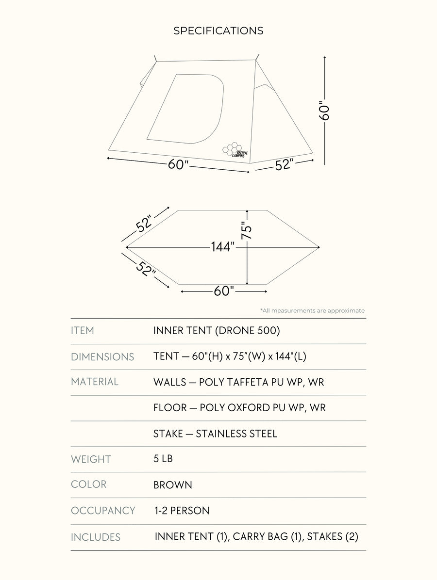 The Drone accommodates up to two (2) Inner Tents.