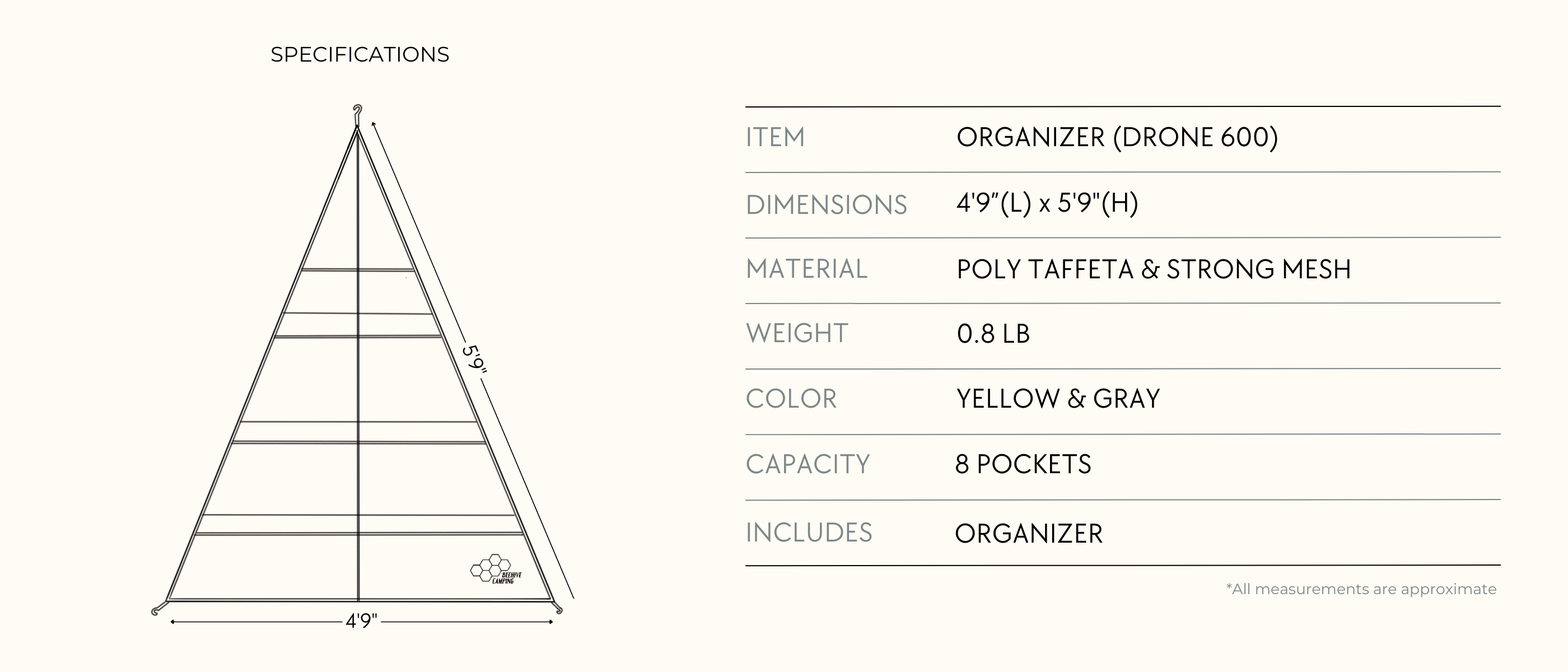 The Organizer has 8 pockets, 6 are strong mesh pockets and 2 are fabric pockets.
